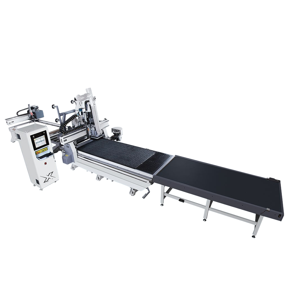2613EL CNC Labeling & Sheet Machining Center is a fully automatic multi-functional equipment that provides users with automatic labelling, marking, milling and other functions. Cutting and drilling of various furniture and solid wood boards. The machine adopts a German control system, which can be seamlessly connected with the production data software of various brands and directly input production data. It greatly improves production efficiency and reduces the daily production cost of the factory。