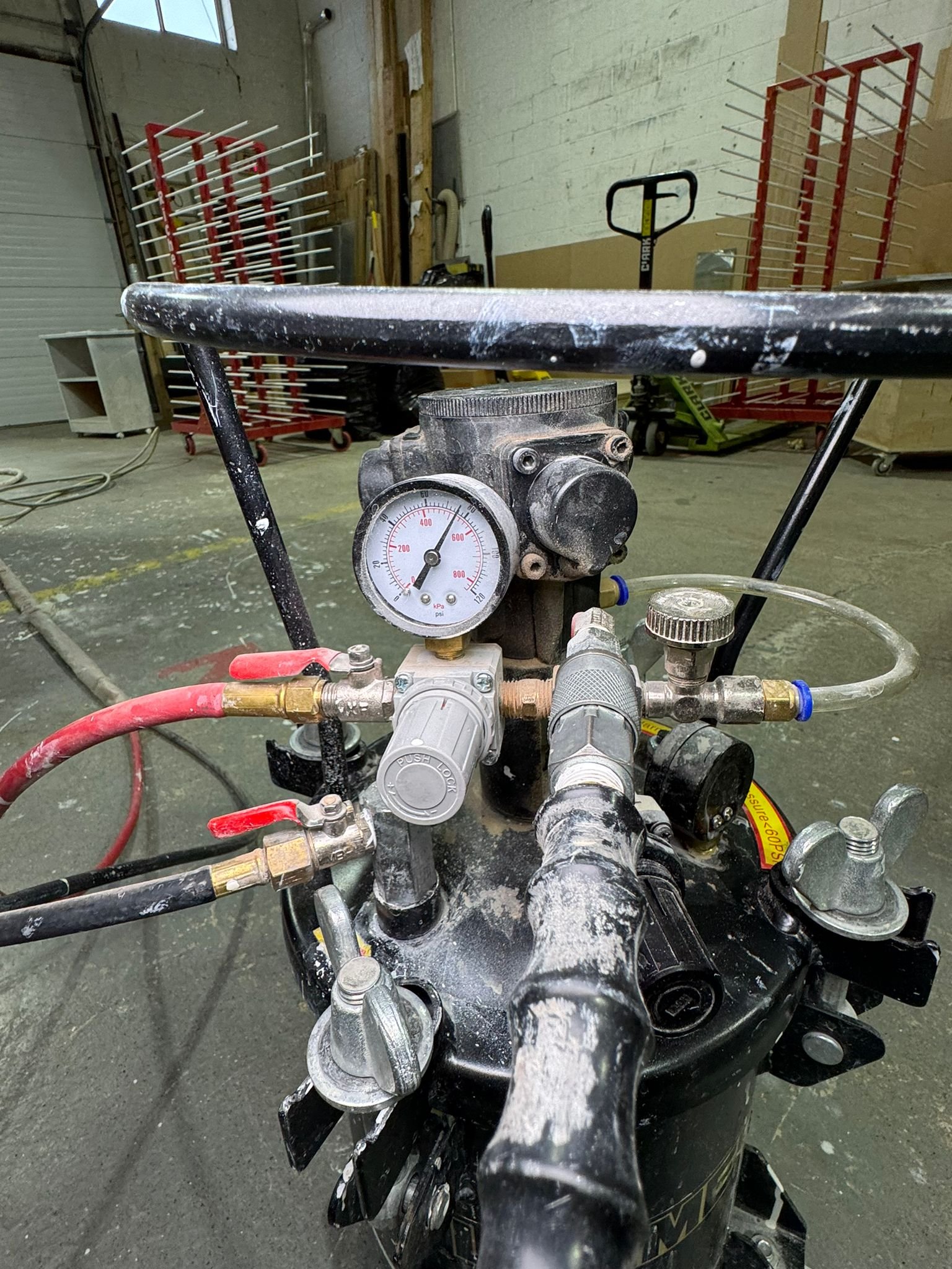 The machine features a powerful air compressor that runs smoothly and is designed to maintain consistent pressure throughout the spraying process. It comes equipped with a high-quality spray gun, offering precise control and a clean finish. The Used Paint Spray Machine is in good condition, has been well maintained, and is fully operational, making it an excellent value for workshops or contractors seeking dependable equipment without the price of new machinery.