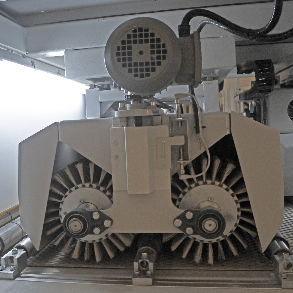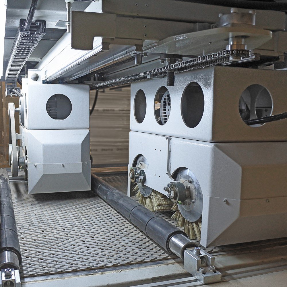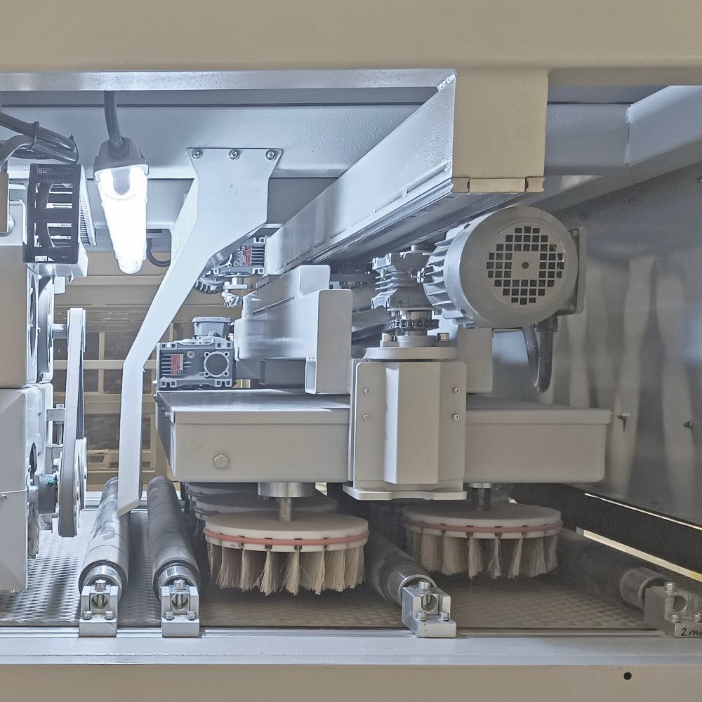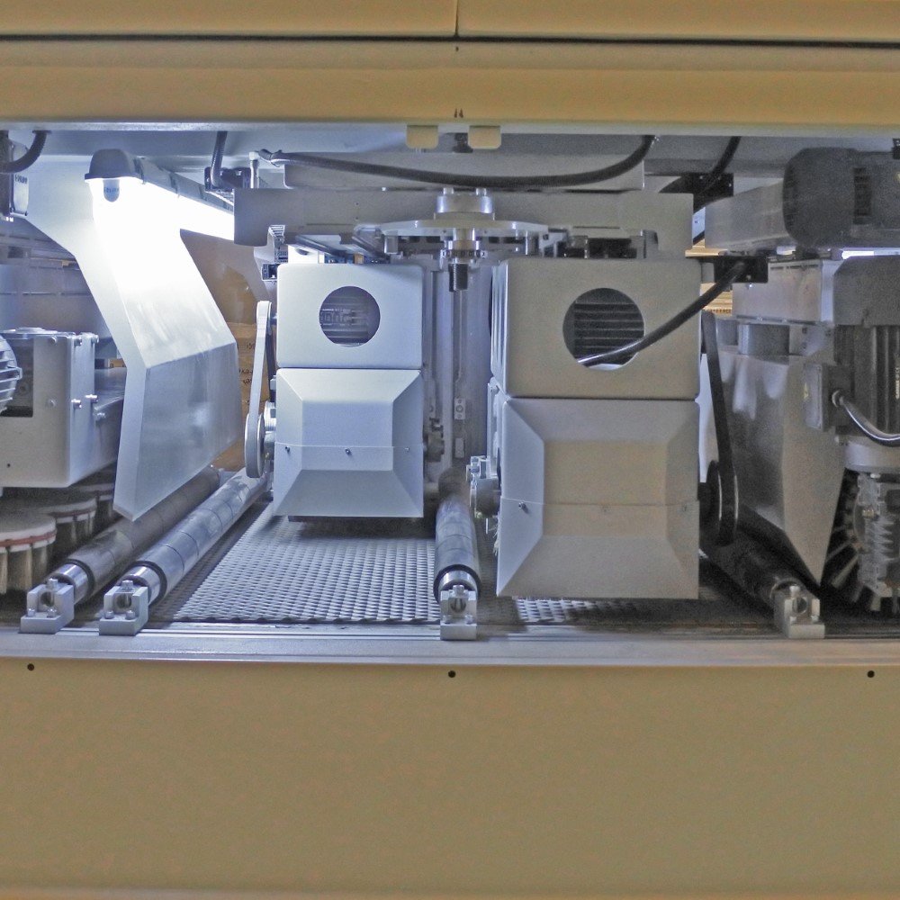 This unit consists of 9 oscillating brush sanders with automatic adjustment of height, speed and direction. It is extremely successful in raw and primer sanding of carvings on the product. Easily replaced brushes provide convenience to the operator. Its ability to rotate both sides allows the use of different grits on 2 surfaces.