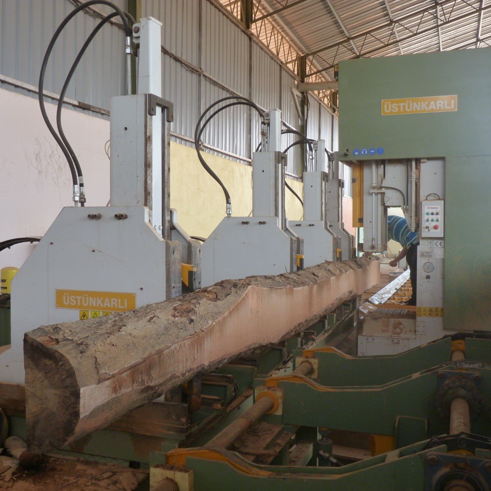 There are three types of Log Carriage models available for log sawing operations: Type E, Type F, and Type G. Each type is equipped with independent horizontal moving hooks that securely hold the logs during cutting, allowing for accurate and efficient board production. Whether used as a stand-alone unit or integrated into a full sawmill line, the Log Carriage for Lumber Yards delivers reliable performance under heavy workloads.